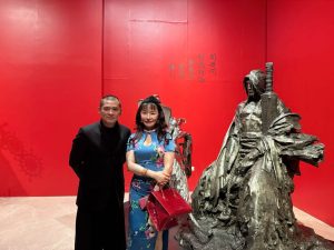Owner Linda’s Gallery, Linda Ma, berfoto dengan sang seniman, Ren Zhe. (Istimewa)